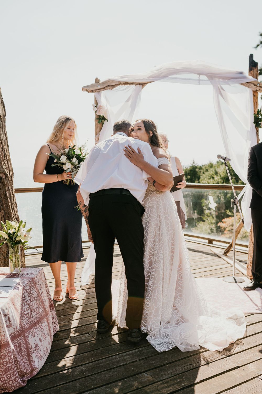At this intimate wedding, the location was in a rental home in South Surrey which had a gorgeous view of the water. Although the layout was not conventional, it made for this wedding to be even more unique and different from any others. I would highly recommend looking into rental homes as an option and something to consider.