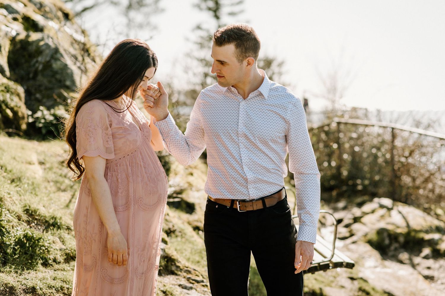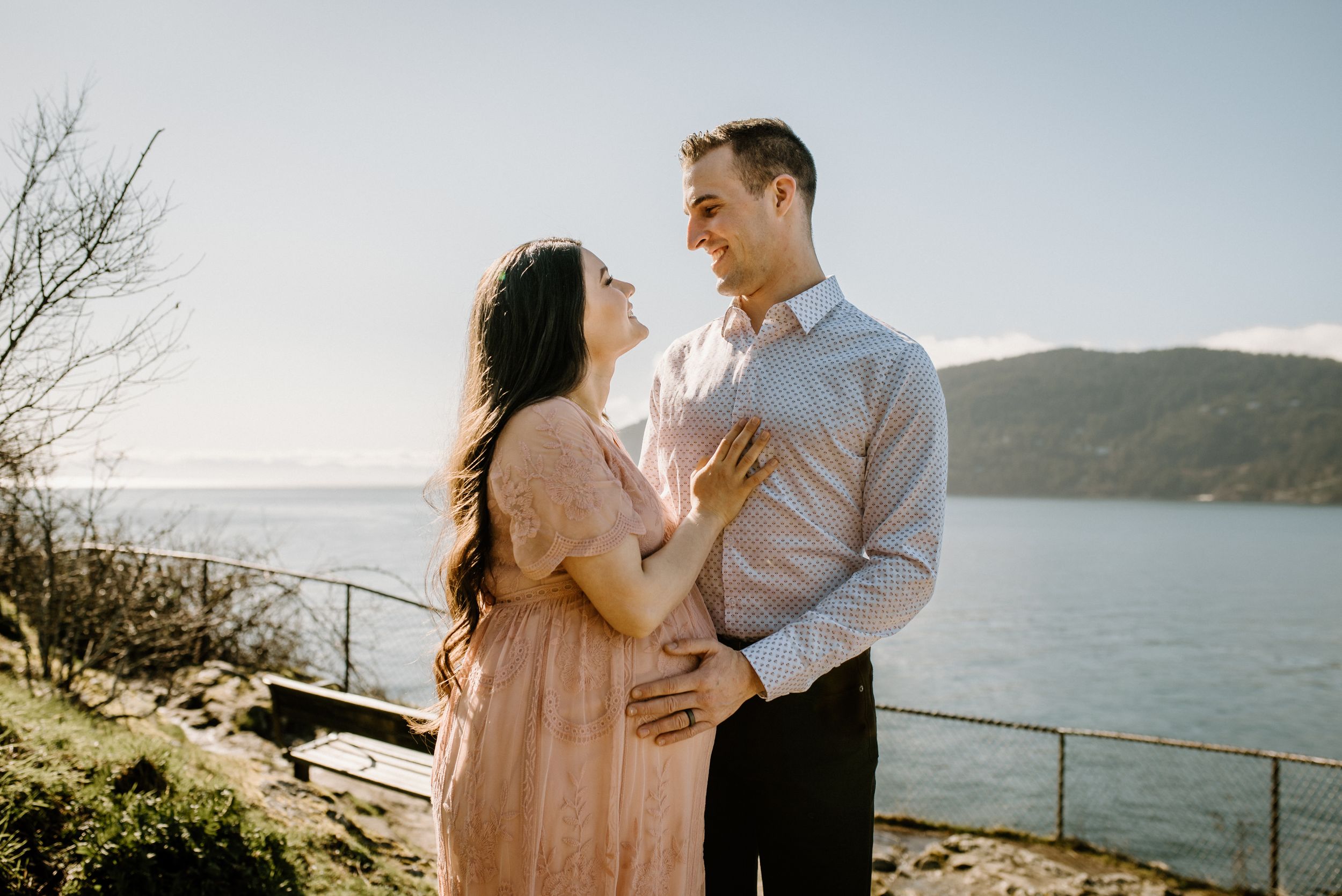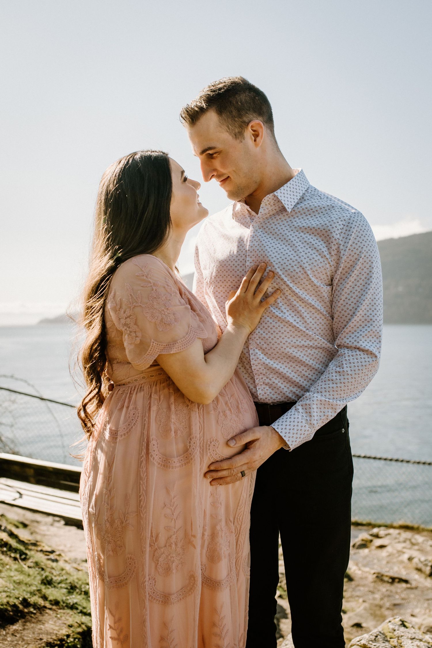 This shoot was super special because two years prior, I had the privilege to help photograph their engagement session and now they have a little one on the way! Being able to capture a couple's life before they grow their family is an incredible honour. We all made the drive out to West Vancovuer to the oh so popular Whytecliff Park. It's always fun coming here because you never know what to expect. It ended up being super sunny which kept us warm and it was pure lovely.